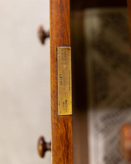 Enhance your study with this vintage wooden pedestal desk, featuring a charmingly worn blue leather top. Perfectly sized for small spaces, this desk measures 110cm wide, 58cm deep, and 73cm high. It offers ample storage with multiple drawers, combining functionality with classic style.
