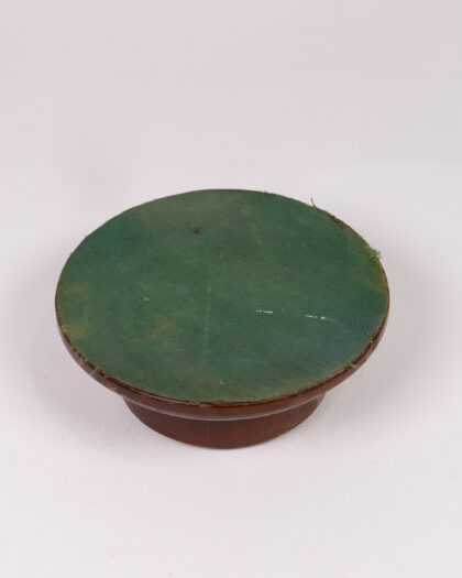 A vintage wooden display plinth stand featuring a rich brown finish and a green felt base. This classic plinth is ideal for displaying collectibles, small sculptures, or other treasured items. The wooden construction provides a sturdy and elegant foundation, while the felt base protects surfaces and adds a touch of sophistication. In good condition with some age-related wear, this plinth will make an excellent addition to any home or collection.
