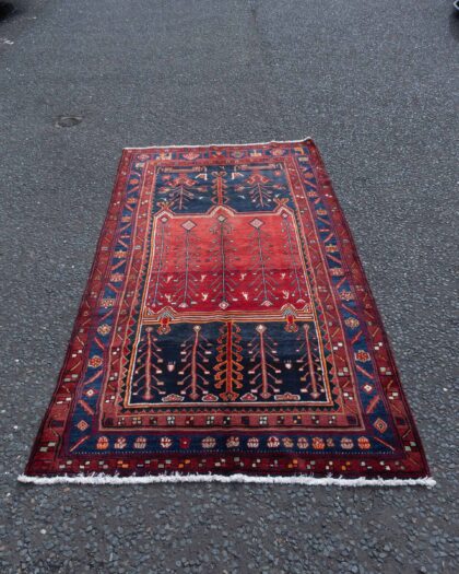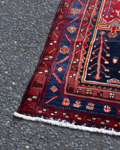 Vintage wool rug in red and blue. Excellent condition and ready for use in your home. Traditional style.