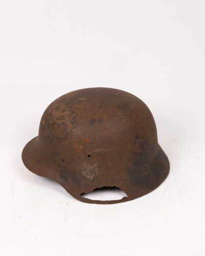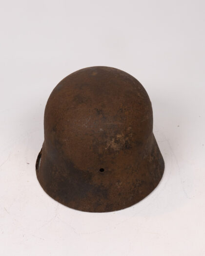 Original WWII German helmet in relic condition. (M40 or M42) This helmet shows significant signs of age and wear, with heavy rusting throughout. It is a genuine piece of WWII history, ideal for display or for serious military collectors. Please examine the photos closely for condition. The overall condition reflects its age and service.
