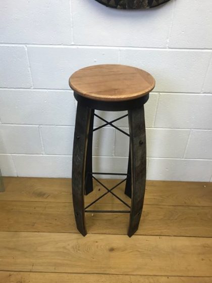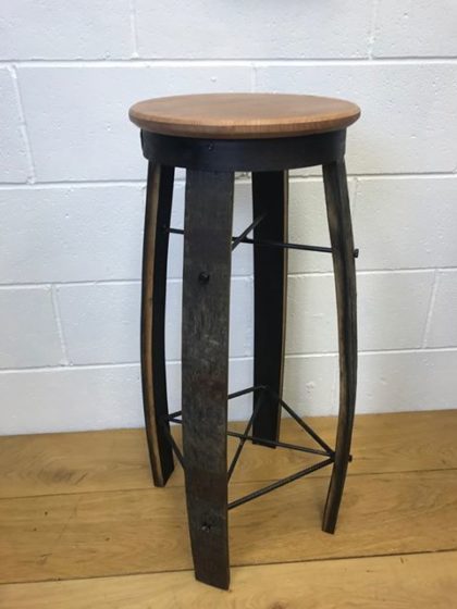 Bar stools that have been made from whiskey barrels