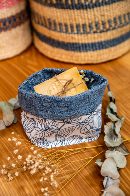 This White Floral x Blue Handmade Fabric Pot made in collaboration with Kapdaa–The Offcut Company who take fabric offcuts and samples and turn them into wonderful new products! They work with huge brands in fashion and automotive industry… AND US!