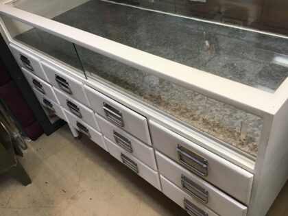 Recently painted, this old shop cabinet makes a fine display piece for your favourite collections.