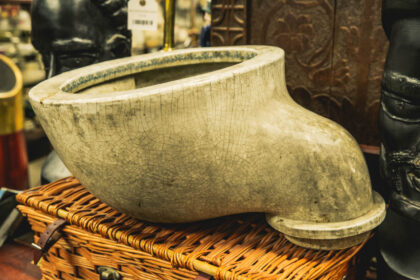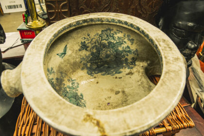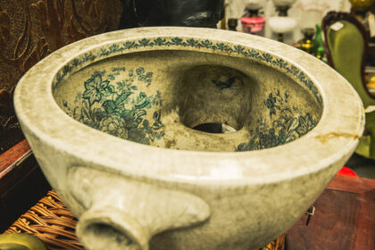 This is a porcelain toilet bowl commissioned by White Star Line and is a sample of the toilets then used aboard the Titanic. An unusual piece of Belfast's Titanic history!