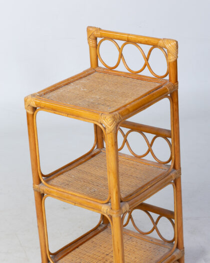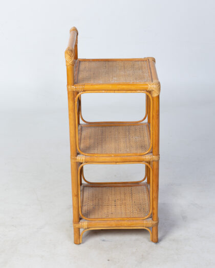 Charming three-tier bamboo shelving unit. Ideal for display or storage, adding a touch of natural style to any room. Good condition.