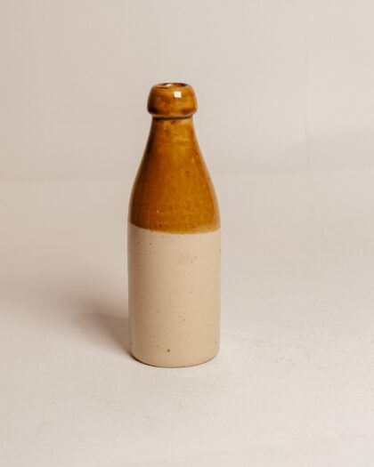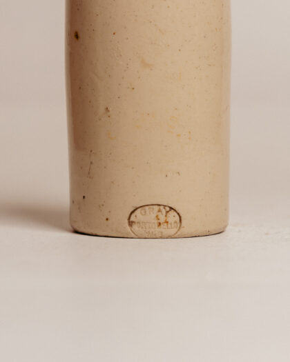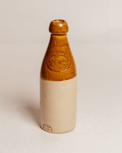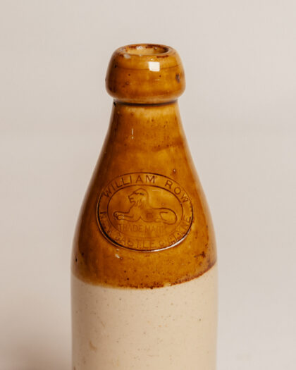 A brown, two-tone stoneware bottle for William Row Newcastle on Tyne. Bears impressed Gray Portobello maker's mark.