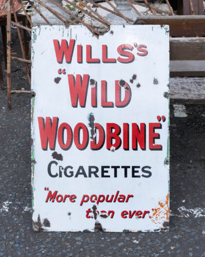 Wills's "Wild Woodbine" Cigarettes Advertising Sign. A classic enamel sign with a great look. Perfect for a collector or display piece.