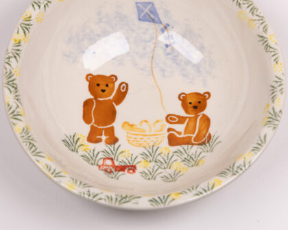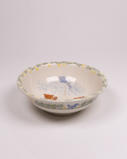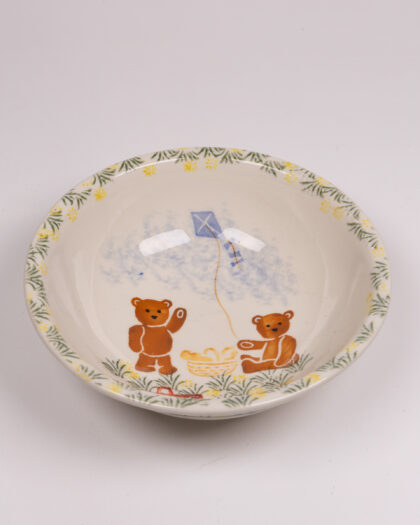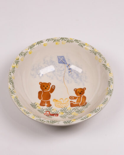 Charming Windermere ceramic bowl, hand-decorated with a playful teddy bear and kite scene, perfect for adding a touch of whimsy to any space.