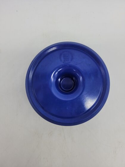A blue circular plastic ashtray. Bears white lettering which reads, "Winston". Made by Ornamin-Kunststoffwerke Minden and bears mark to base.