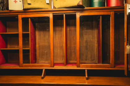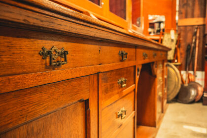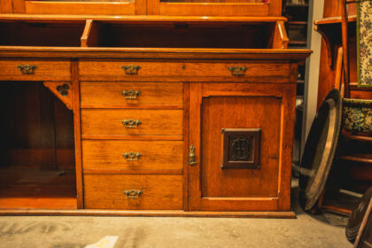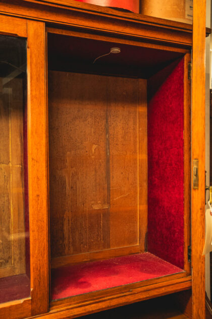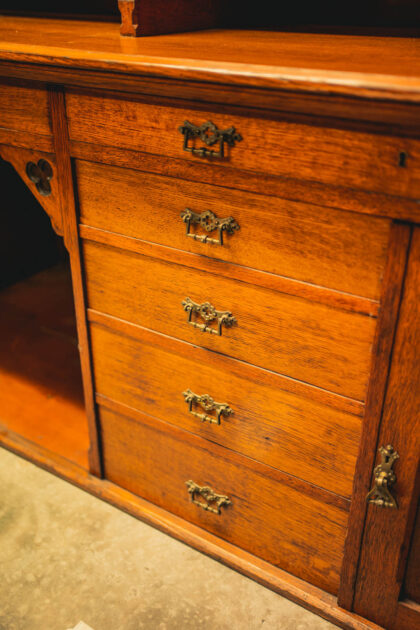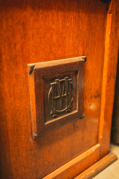 A boardroom cabinet taken from Wm. Clark textile manufacturers in Maghera. This is a huge, solid piece - described as "eye-wateringly heavy".