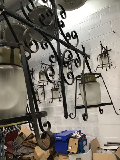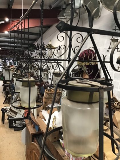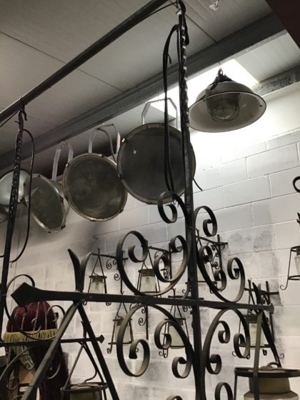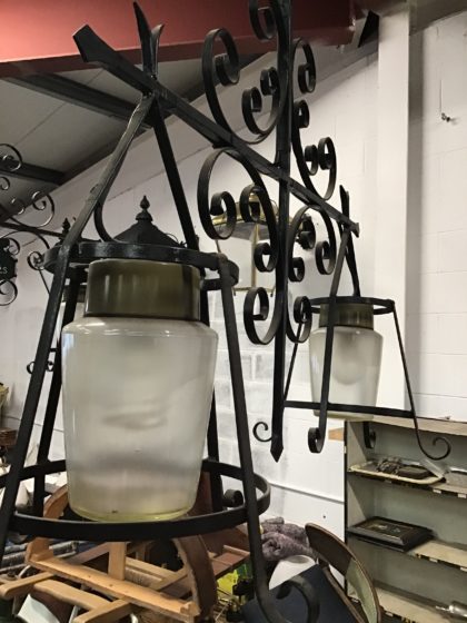 Wrought iron with heavy glass shade light fitting