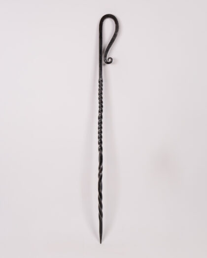 Hand-forged wrought iron fire poker featuring a twisted shaft and loop handle. Rustic and functional. Excellent condition.