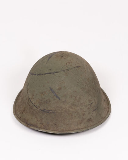 WWII British Military Helmet Turtle MK3 with a green finish. A unique piece of military history. Wear and tear consistent with age.