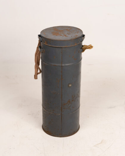 WWII French civilian gas mask and canister. A unique military collectible. Shows age-related wear, adding to its authenticity. Display-ready.