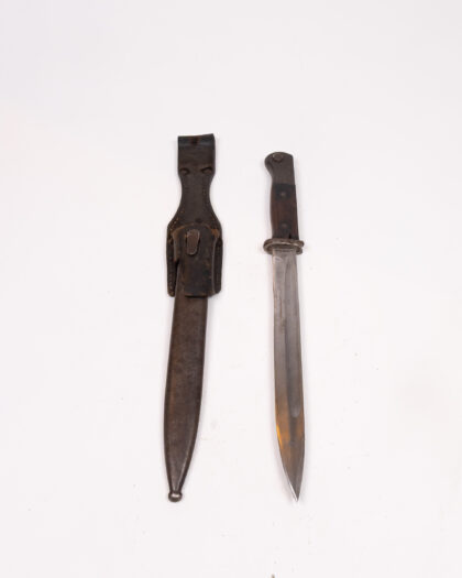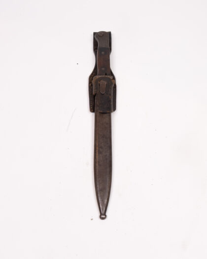 Original vintage bayonet with leather sheath. Showing age-related wear. Ideal for collectors of military history. Great display piece.