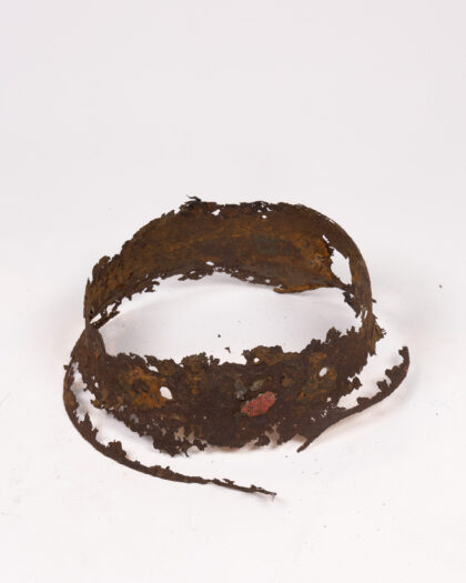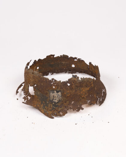 A relic of World War II history, this is a Wehrmacht M35 helmet found in Volgograd, Russia. The helmet shows significant rusting and deterioration consistent with its age and time spent buried. Included is a certificate of authenticity from Stalingradfront.com, dated 2019, confirming the helmet's origin and type. The helmet exhibits a decayed exterior, but still offers insight into military history. Ideal for historical display or collection.
