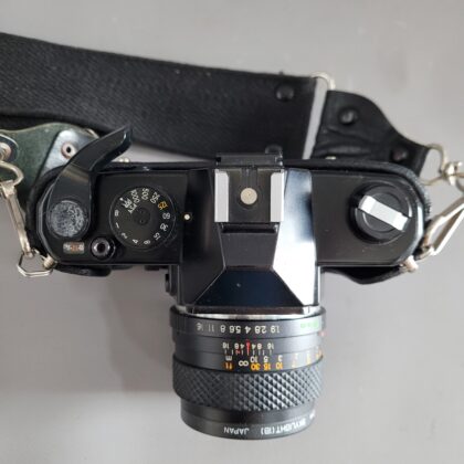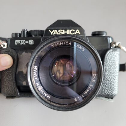 A Yashica FX-3 film camera with matching black leather case. Untested.