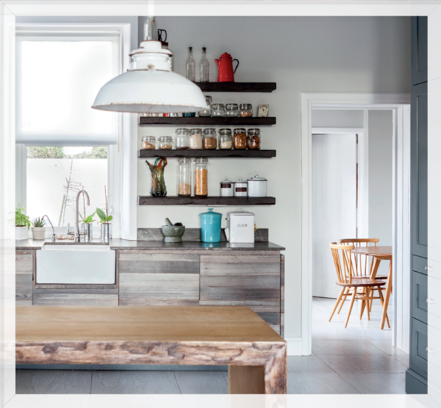 In our own kitchen we wanted a vintage industrial look, but a softer version; a warmer feel.